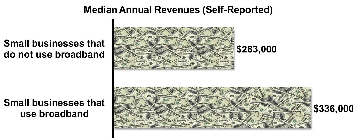 Over one-half of all American business establishments employ fewer than five people (54% of U.S. businesses, or approximately 4.1 million establishments according to the most recent County Business Patterns report by the U.S. Census Bureau), so it’s important for small businesses to have access to cybersecurity resources that can fit within their often-limited budgets. Connected Nation research shows that broadband is a vital tool through which small businesses can streamline their work, find new customers, and become more efficient competitors in today’s global marketplace. According to Connected Nation’s recent Business Technology Assessment, small businesses (those with fewer than five employees) that use broadband earn median annual revenues that are more than $50,000 higher than their competitors that do not use broadband.